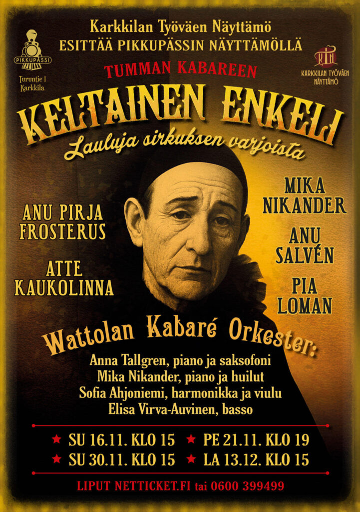 Liput esityspaikalta tuntia ennen näytöstä: peruslippu 30€, opiskelijat, eläkeläiset, varusmiehet 27€, lapsi alle 16v 12€.